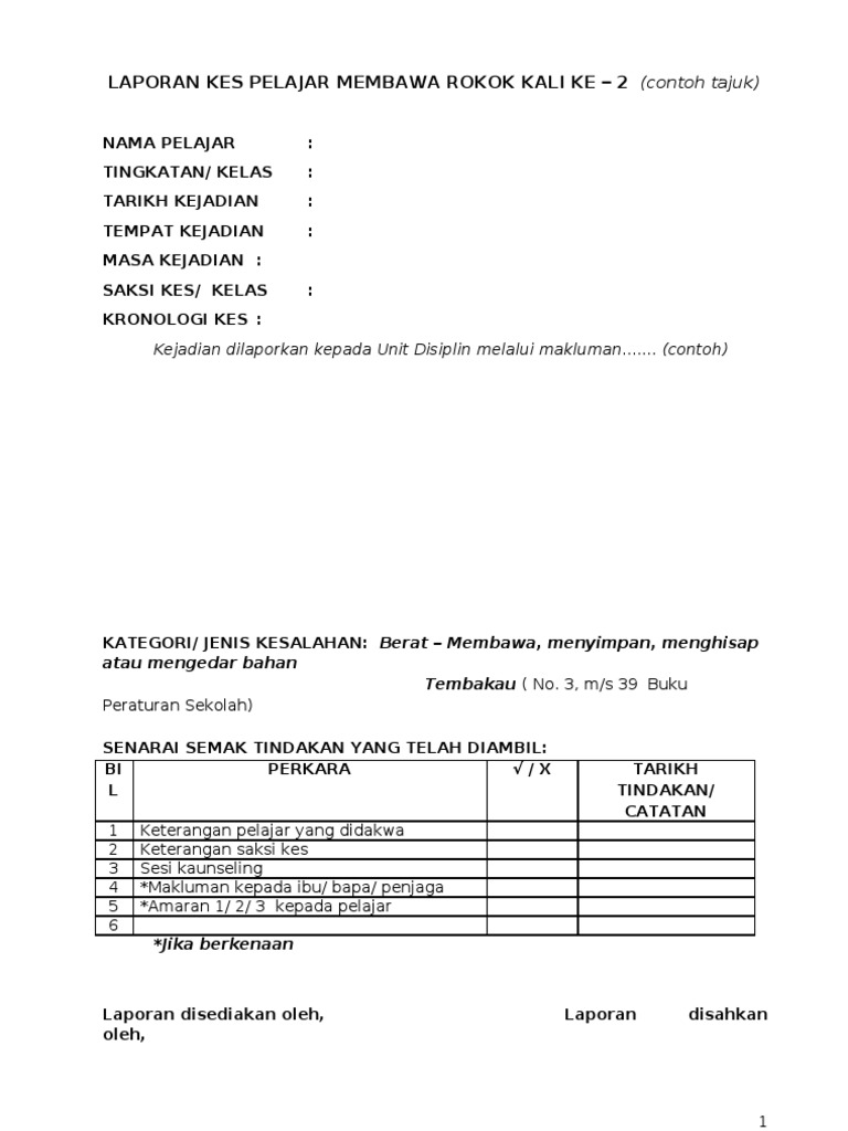 Related : Contoh Laporan Masalah Disiplin Pelajar - Ulasan laporan isu & pengurusan masalah disiplin pelajar di sekolah menengah..